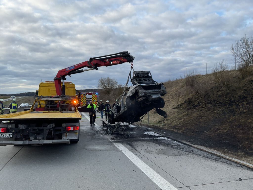 Nach Abtransport des Fahrzeugs wurde die Einsatzstelle an die Polizei und die Autobahnmeisterei übergeben.